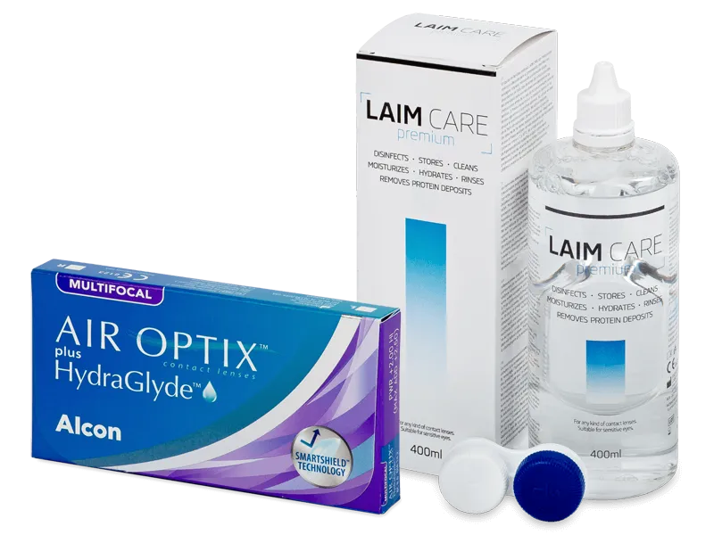 Air Optix plus HydraGlyde Multifocal (6 kpl) + Laim Care -piilolinssineste 400 ml
